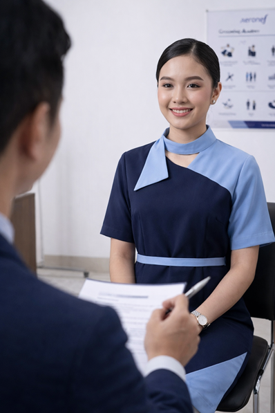 Dengan mengikuti pelatihan di Aeronef Academy, kamu akan memiliki keunggulan kompetitif dibandingkan pelamar lain. Kamu akan lebih siap, lebih percaya diri, serta memiliki pemahaman yang lebih matang tentang standar industri. Inilah yang membuat peluang kamu untuk lolos seleksi cabin crew menjadi jauh lebih besar, bahkan tanpa pengalaman sekalipun.
